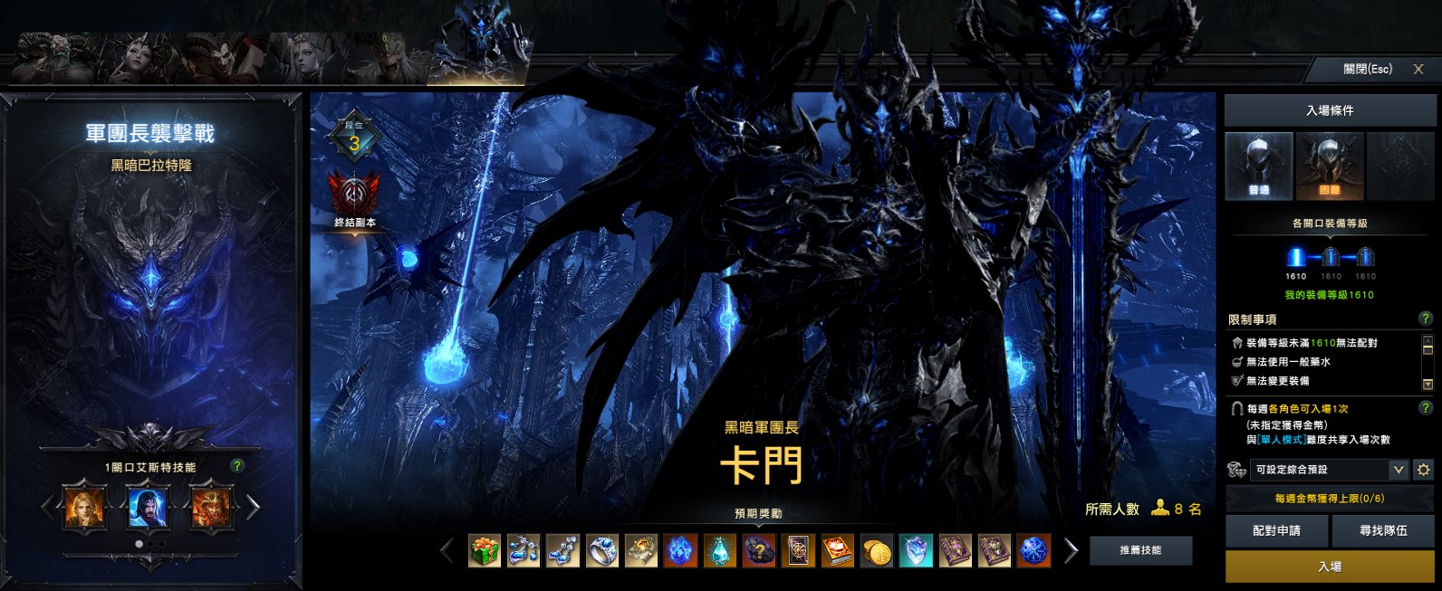 本次更新帶來了全新的副本【黑暗軍團長】卡門,並開放了【混沌象牙塔】單人模式,