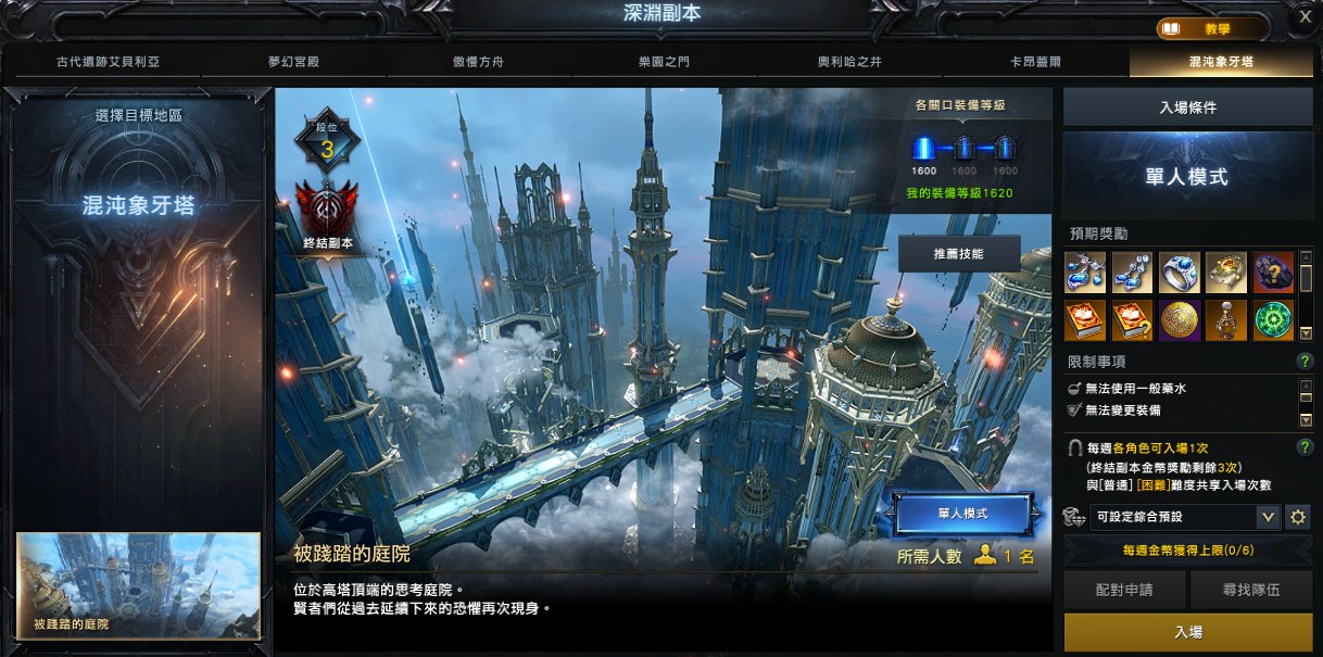 深淵副本混沌象牙塔推出單人模式,提供冒險家們一個人挑戰的選擇,而【閃耀智慧育能劑】,也將可於單人模式兌換。