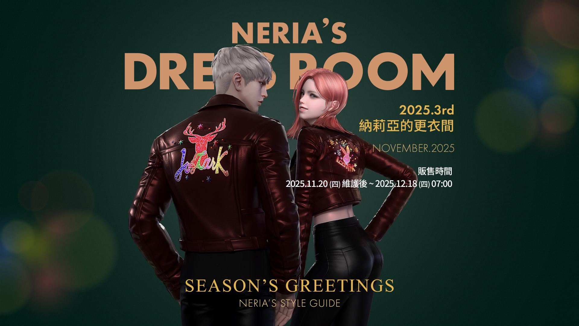新一季的納莉雅更衣間推出,本次為冬日氛圍配件,還有限定的場景,而過往2025 1st的造型也將限時回歸。