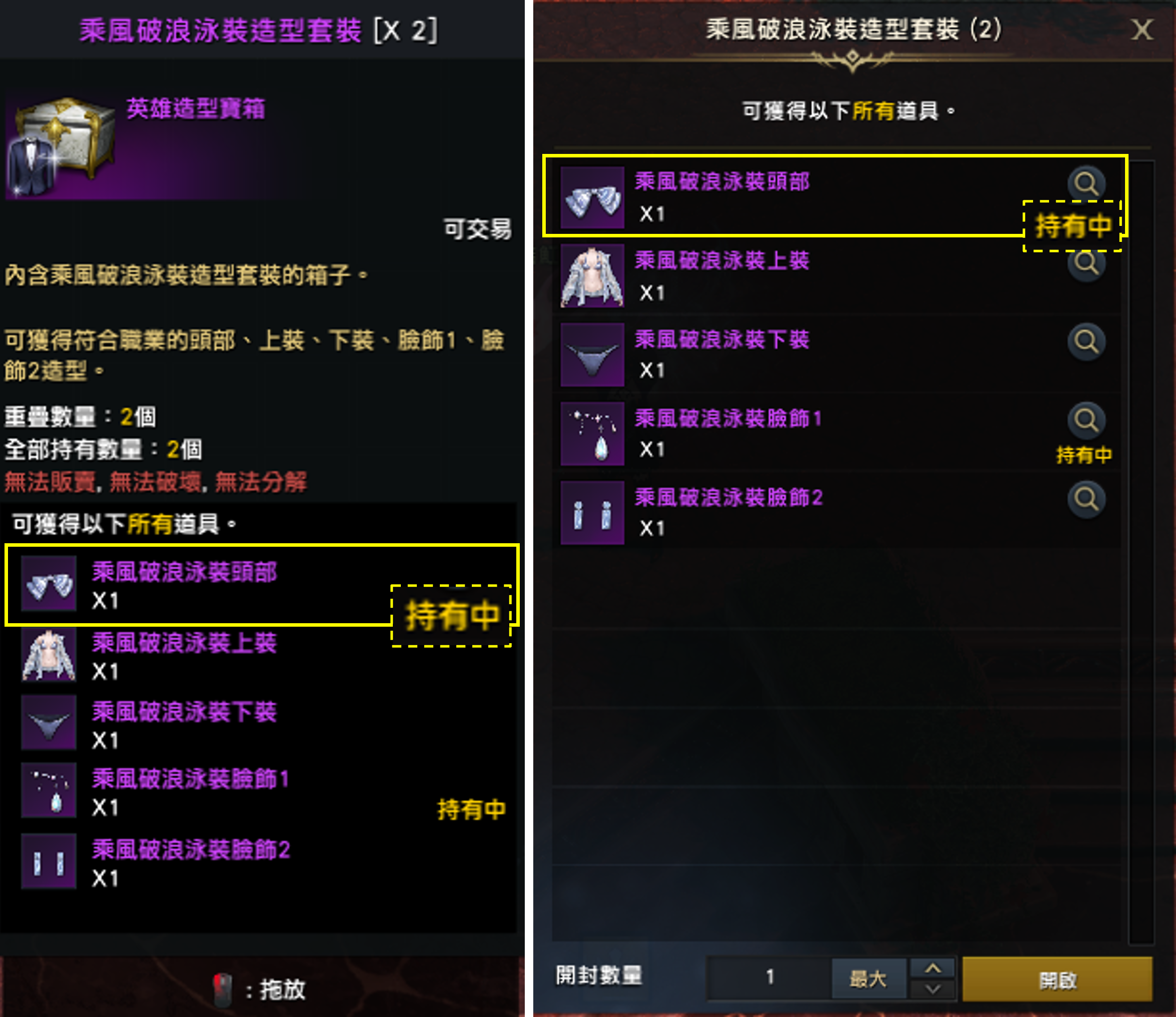 改善造型寶箱提示及內容物預覽視窗,可確認已持有的造型現況。
