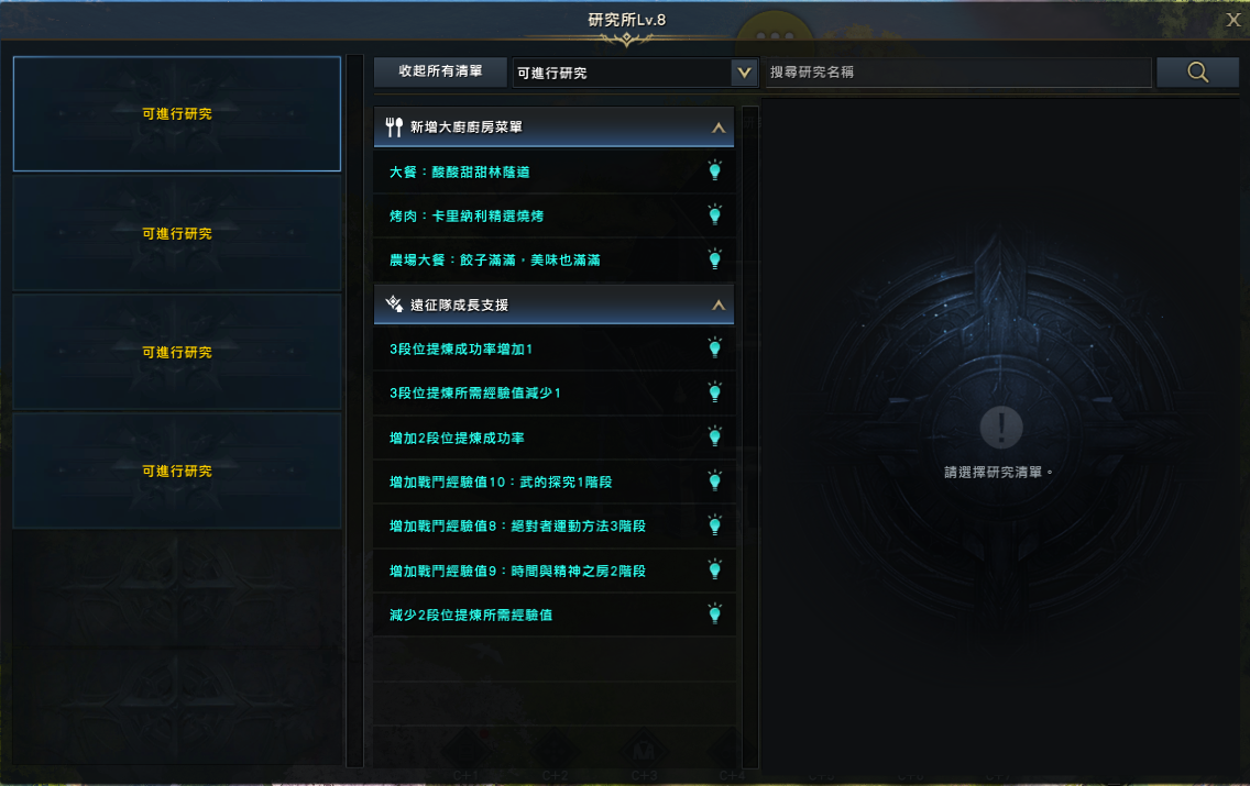 本次更新將新增全新的研究項目,冒險家可透過研究來獲得裝備成長支援,快進行研究吧!