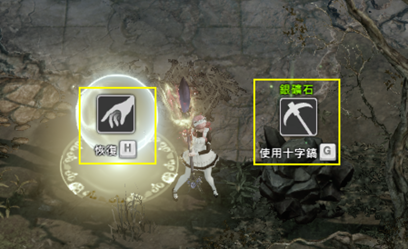 位於可執行一般互動和操作角色生成物體的位置時,將根據輸入的互動鍵([G]、[H]鍵)執行互動。