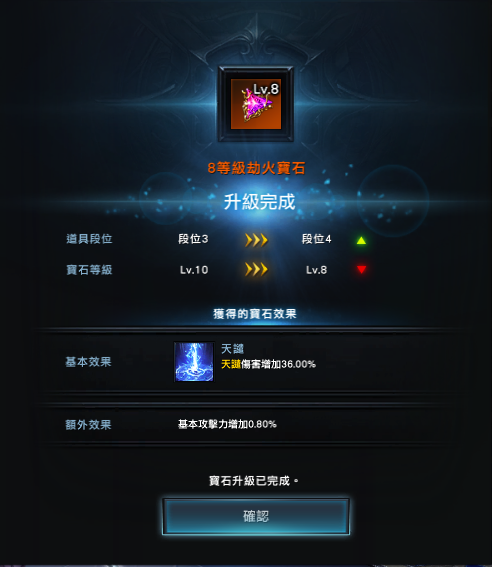 冒險家可透過各大都市[寶石專家]NPC,透過寶石升級系統,將段位3且等級3以上的寶石升級為段位4寶石。