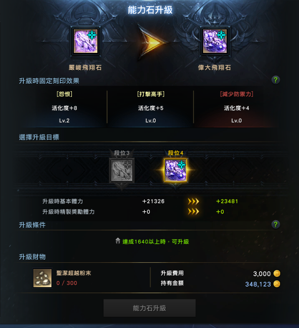 本次更新將新增段位4能力石,冒險家也可以透過[能力石精緻師]NPC,將段位3能力石升級至段位4。