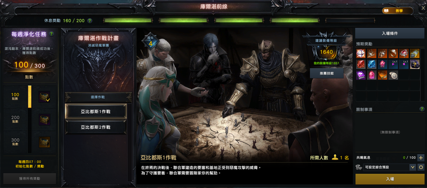 ※【亞比都斯1作戰】最低入場裝備等級1640