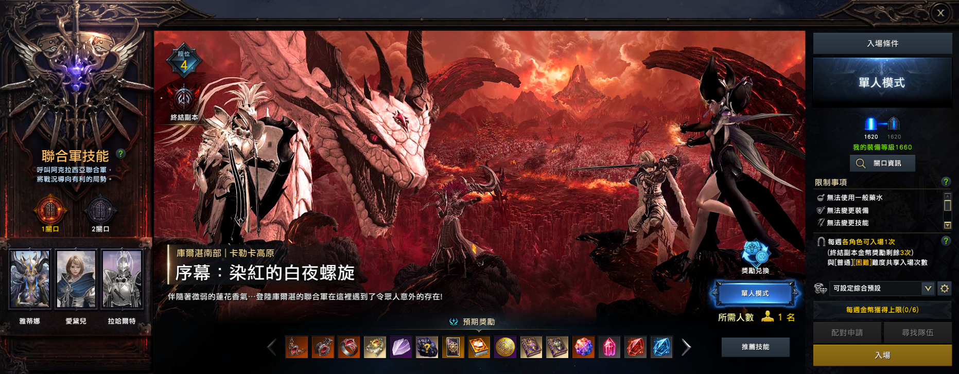 【序幕:染紅的白夜螺旋】單人模式推出啦,提供冒險家多一種選擇,淬煉材料【淬煉:阿爾基歐涅之眼】也可於單人模式商店兌換。