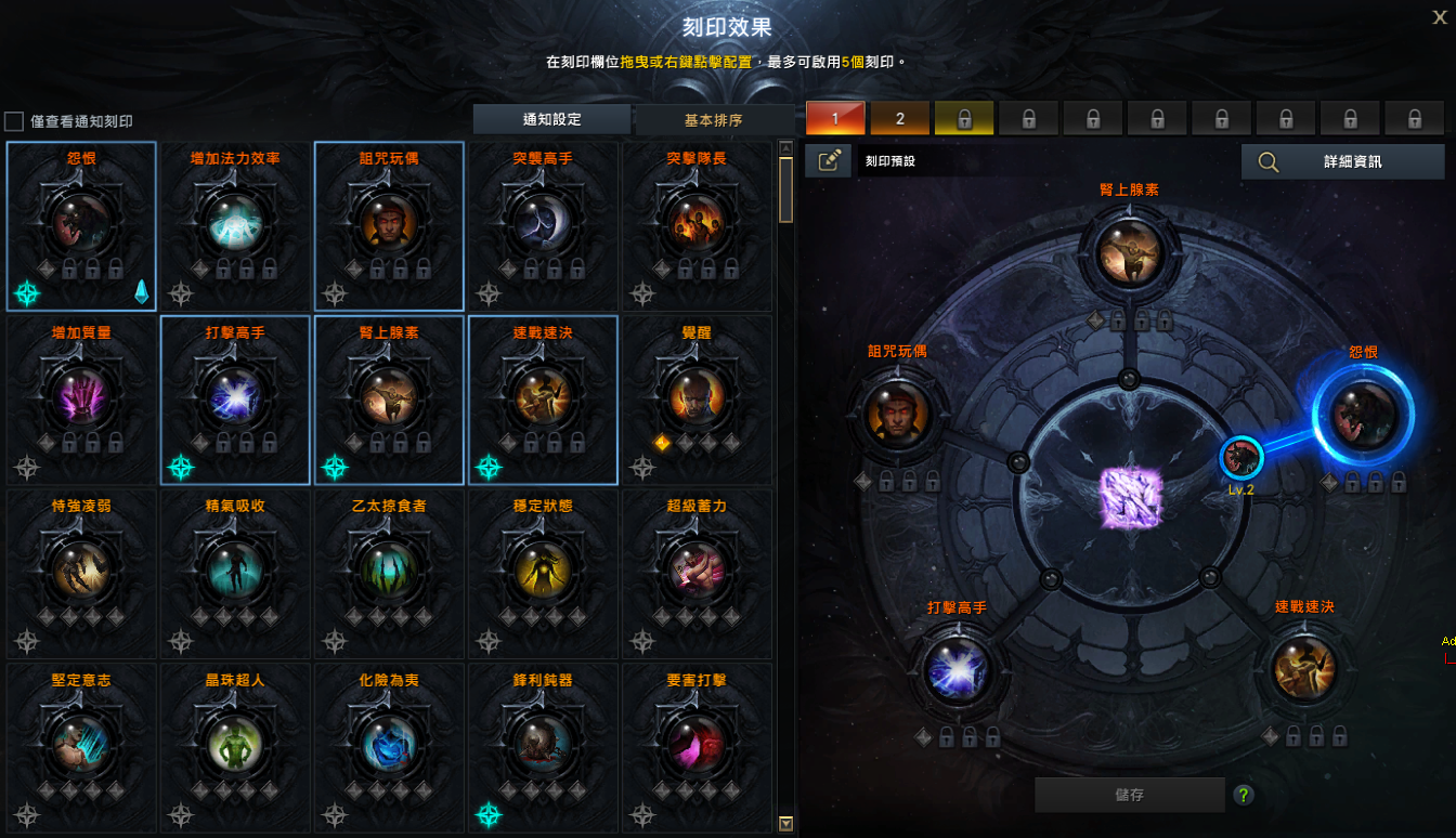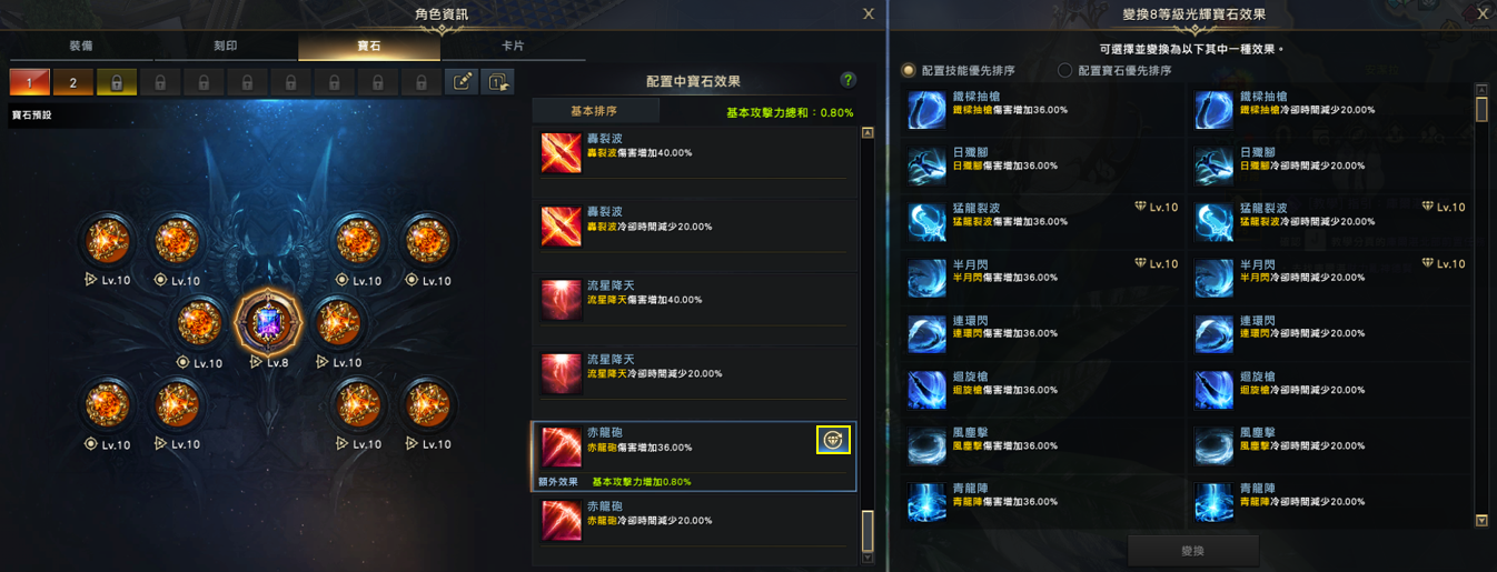 光輝寶石可在裝備的狀況下,於角色資訊寶石頁面下自由變換技能效果。