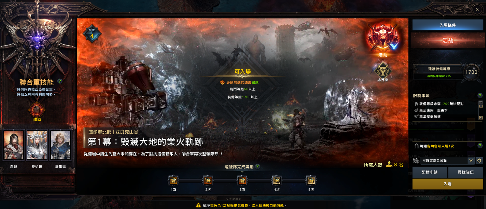 ‧最低入場裝備等級1700