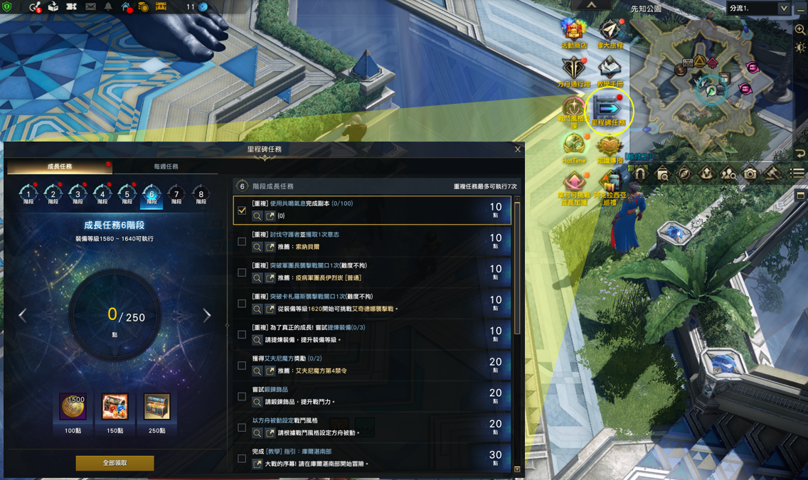 完成裝備發送目標大陸的知識傳授後,也會發送進入下一個大陸所需裝備等級的裝備套裝。