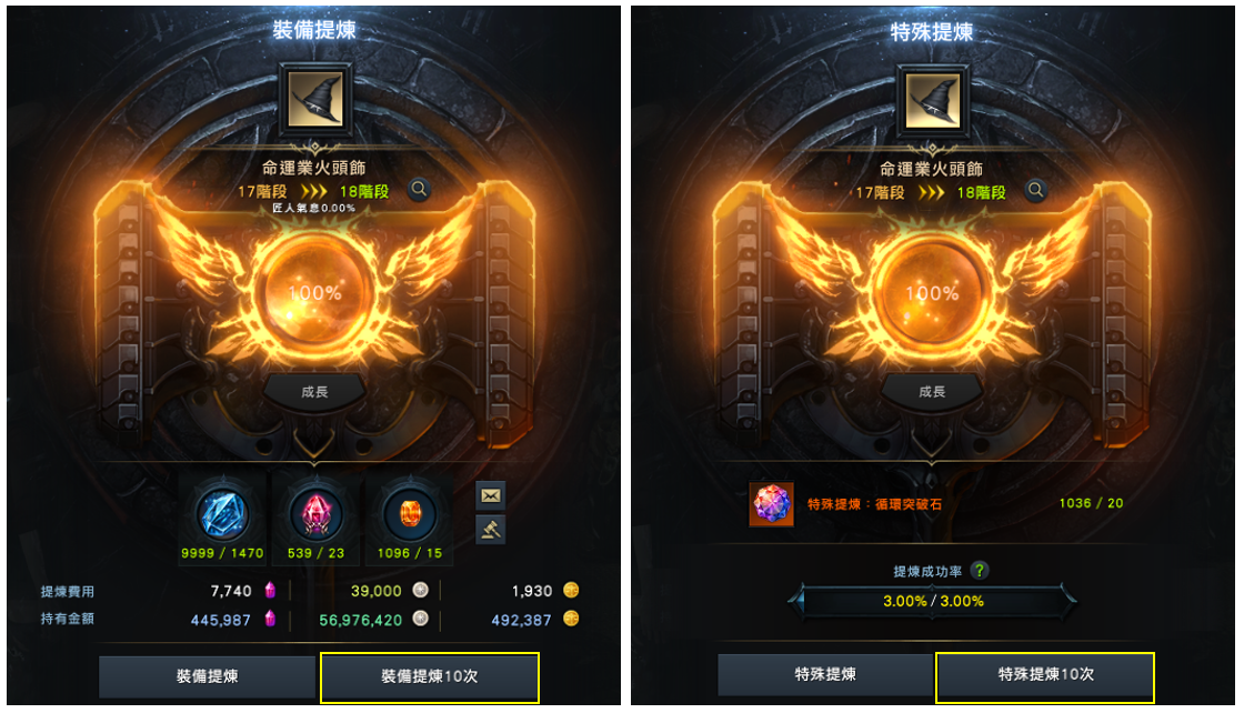 3段位提煉成功率增加1 ~ 3、3段位提煉所需經驗值減少1 ~ 4