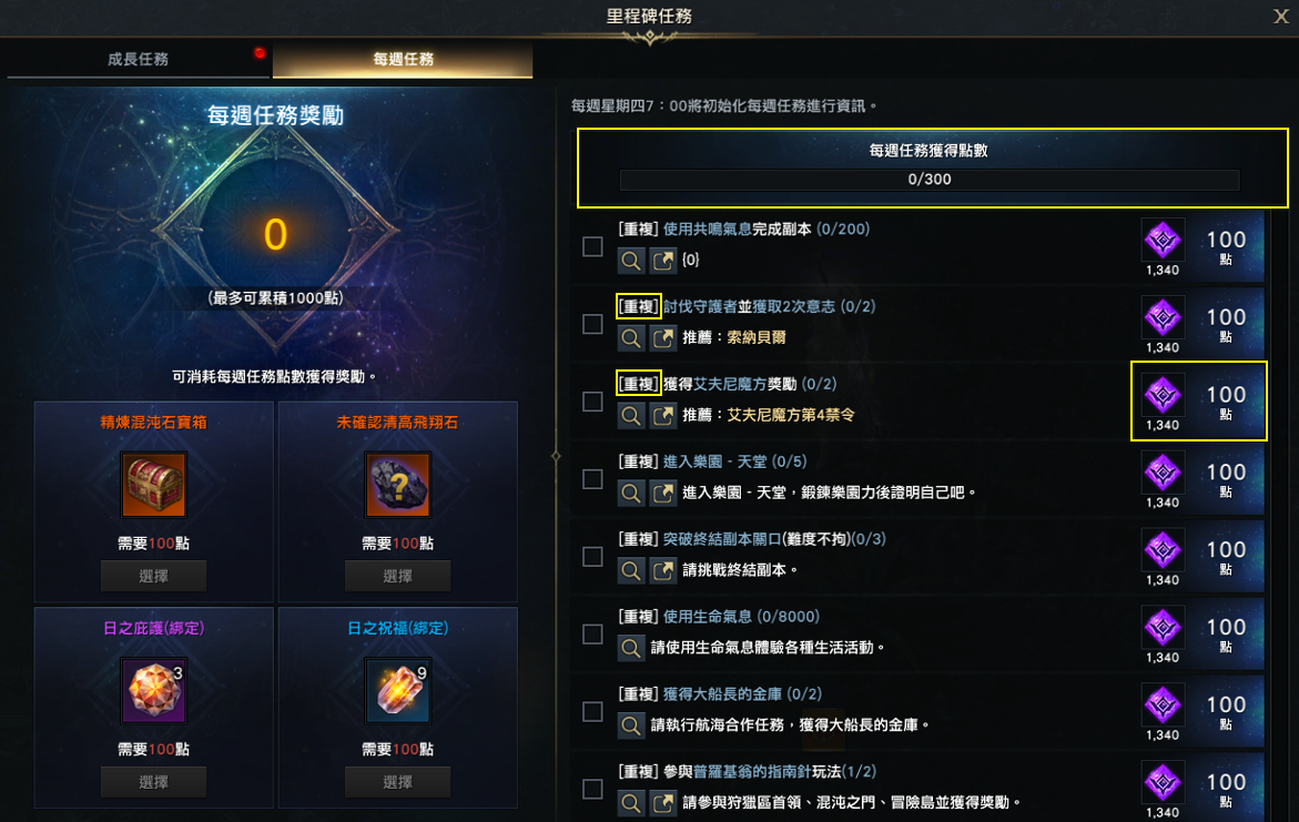 ※ 關於移除軍團長襲擊戰及深淵副本等專屬獎勵,請參考「移除部分每週玩法專屬獎勵」說明。