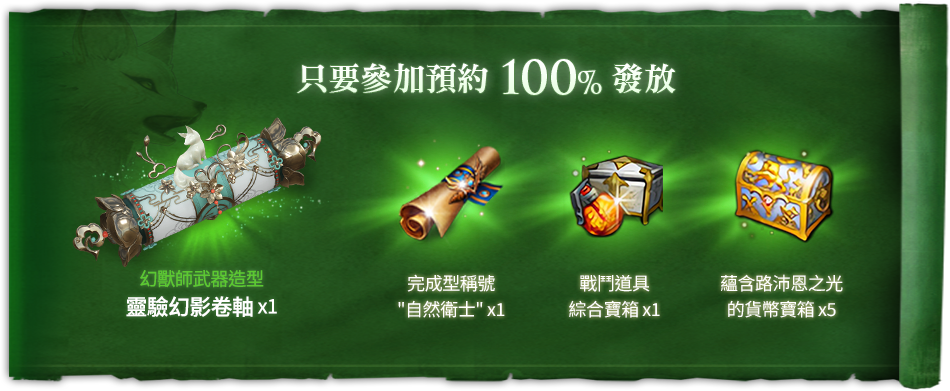 ※ 事前預約發放獎勵以虛擬獎勵序號發放於快樂玩平台 > 服務中心 > 兌換優惠券中進行兌換,且兌換之遊戲帳號內需先有遊戲角色存在。